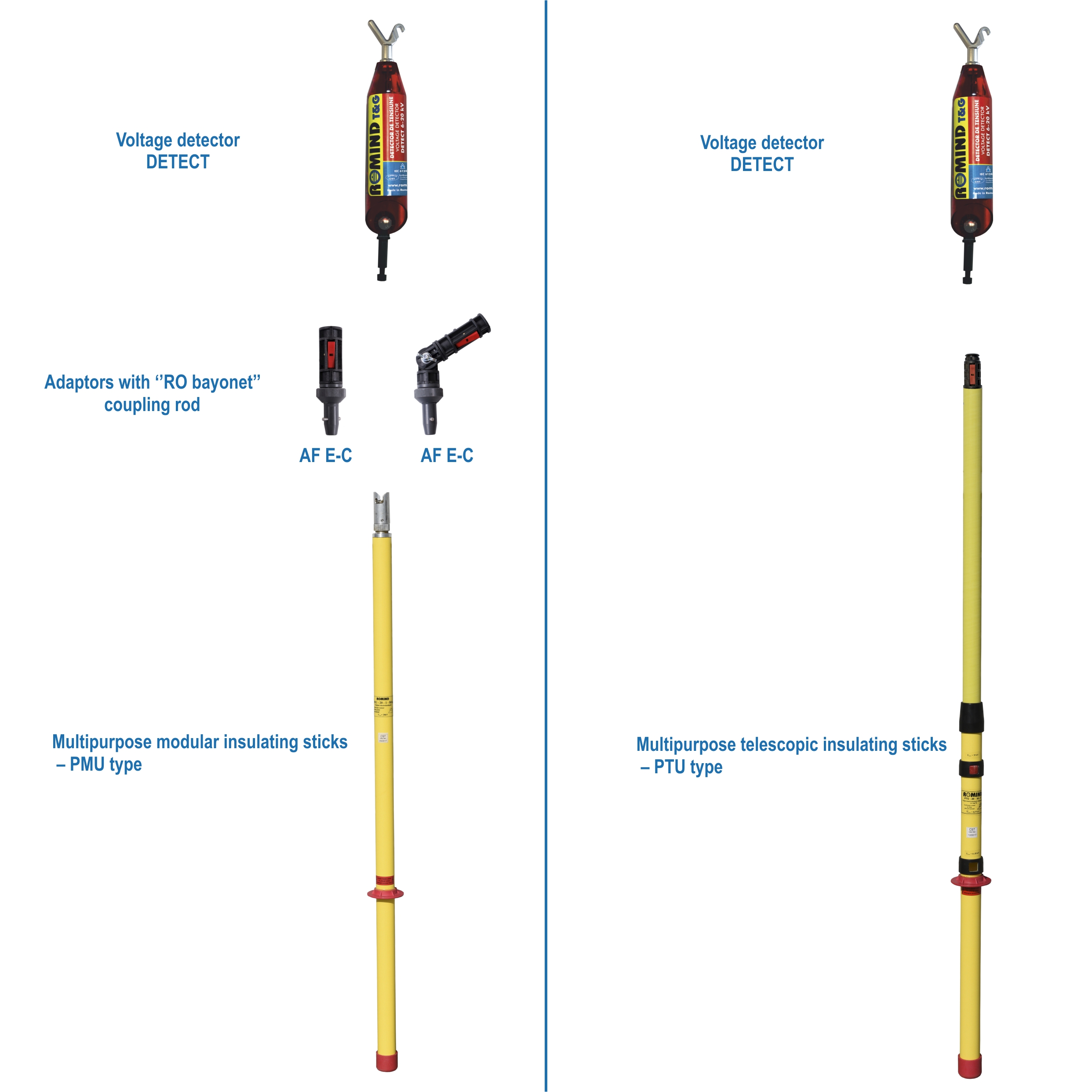 Modular insulating sticks PMU type consist of one or more elements (modules) that can be connected to obtain a complete equipment.