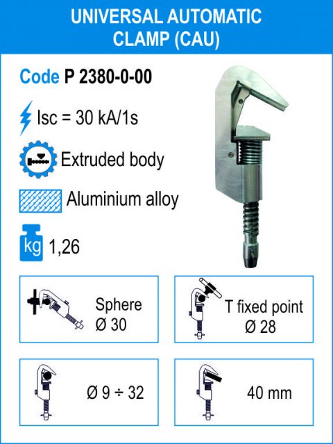 | Technical characteristics | CLASSIC UNIVERSAL CLAMP (CCU) | UNIVERSAL AUTOMATIC CLAMP (CAU) | UNIVERSAL AUTOMATIC QUICK CLAMP (CARU) |