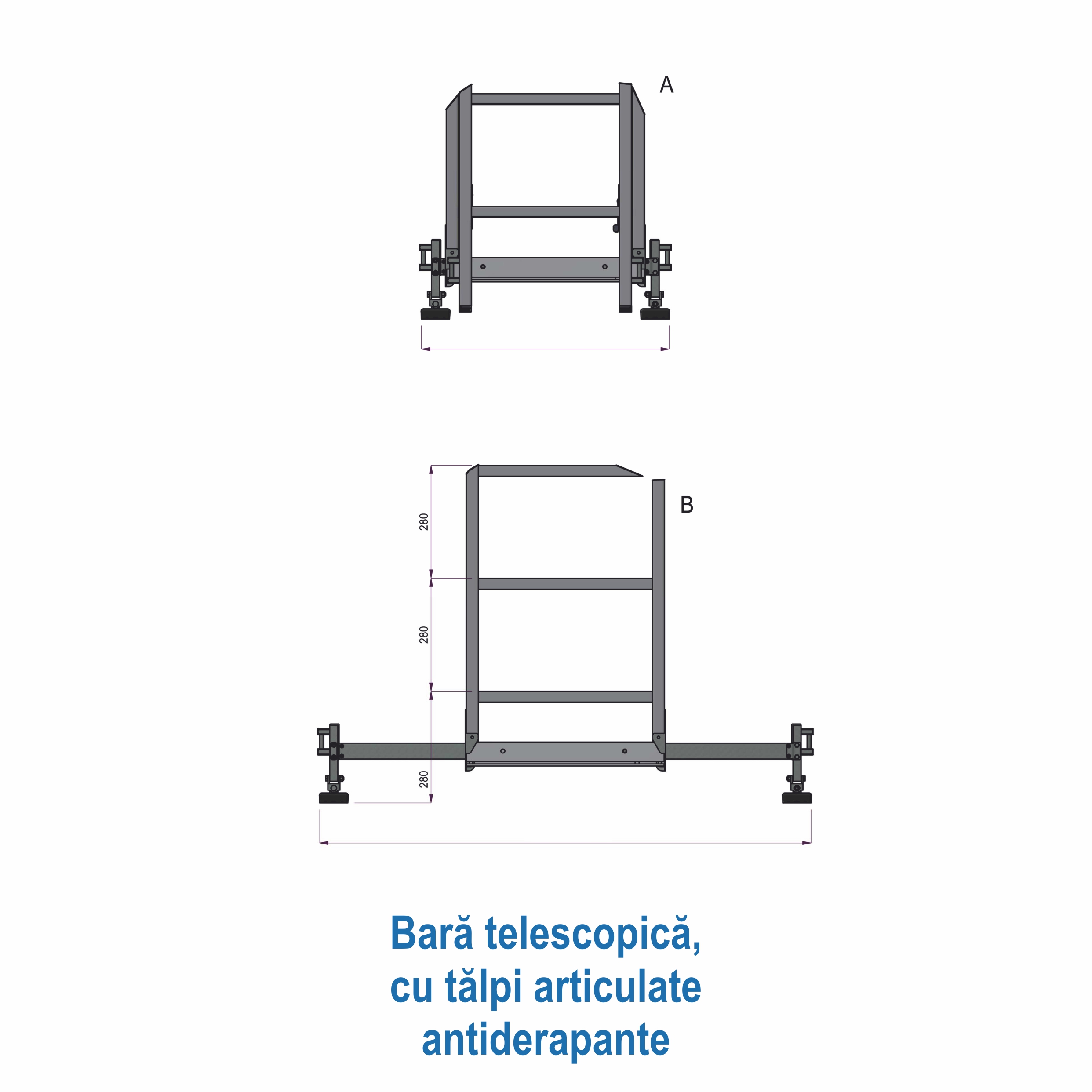 – suport telescopic de sprijinire a scării, pentru limitarea încovoierii
