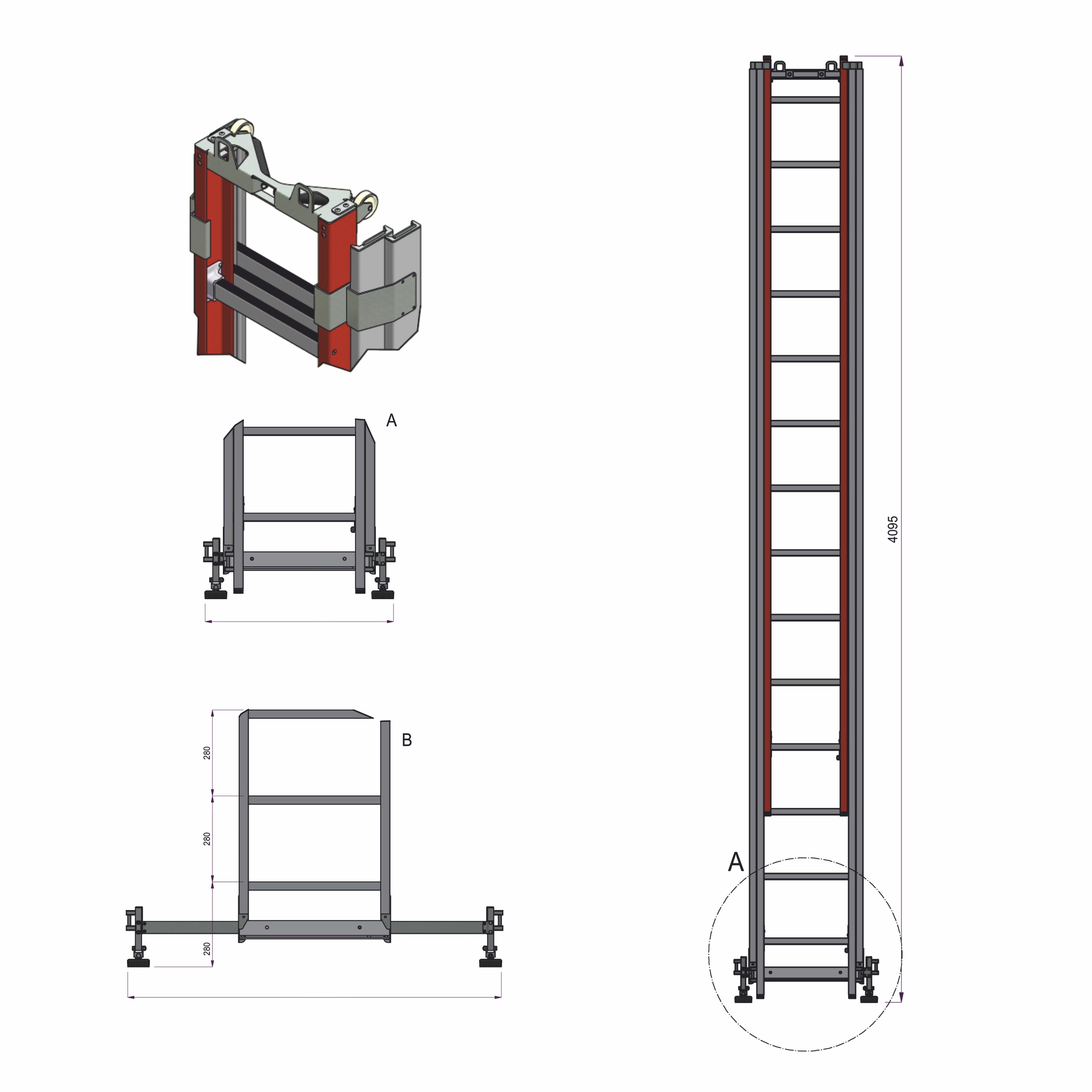 NOTĂ: Modelul de scară AV30039-3X compus din două tronsoane din aluminiu cu câte 14 trepte și un tronson izolant din PAFS cu 11 trepte este un model special agreat de Delgaz Grid.